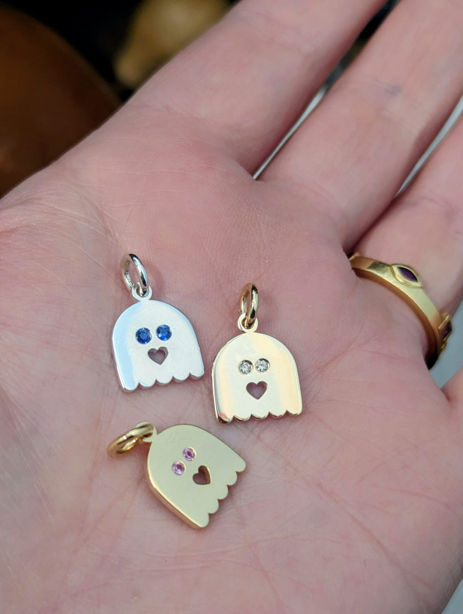 A small spirit in 18k yellow gold — gentle, curious, and a little mischievous.